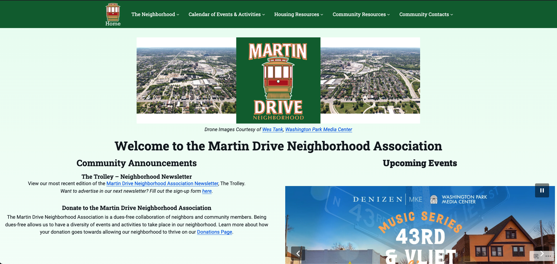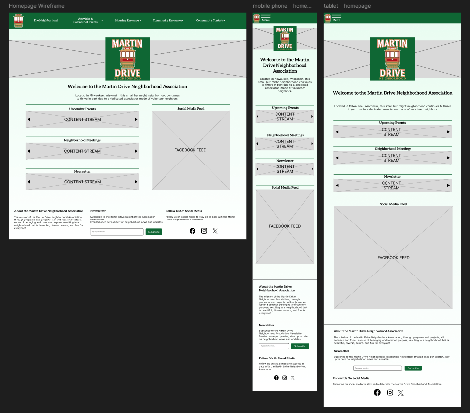 An updated Martin Drive Neighborhood Association website that prioritizes the communication needs of the community.